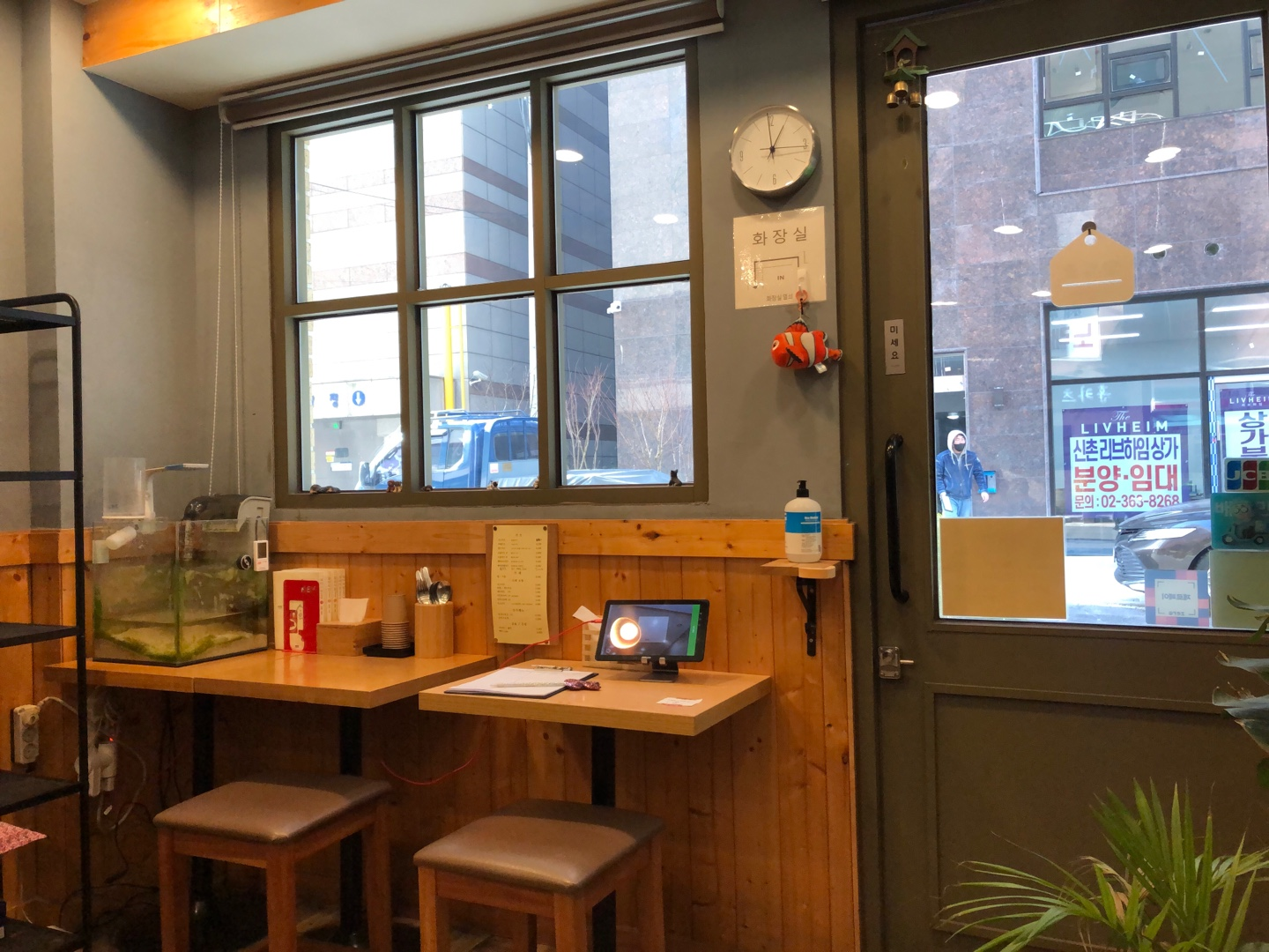 저는 출입문 앞에 있는 가장 바깥쪽 테이블에 착석했는데요. 가게 내부 느낌은 이렇습니다.